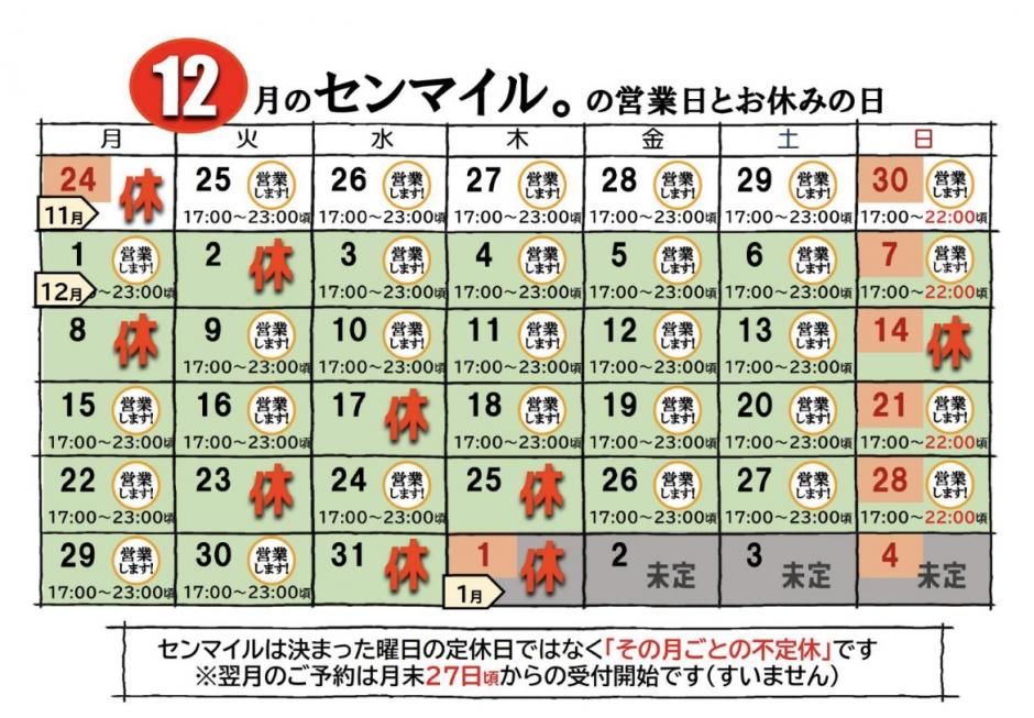 営業日のお知らせやセンマイル。のちょっと裏の事情などを無理のない範囲でゆるゆると更新しています。